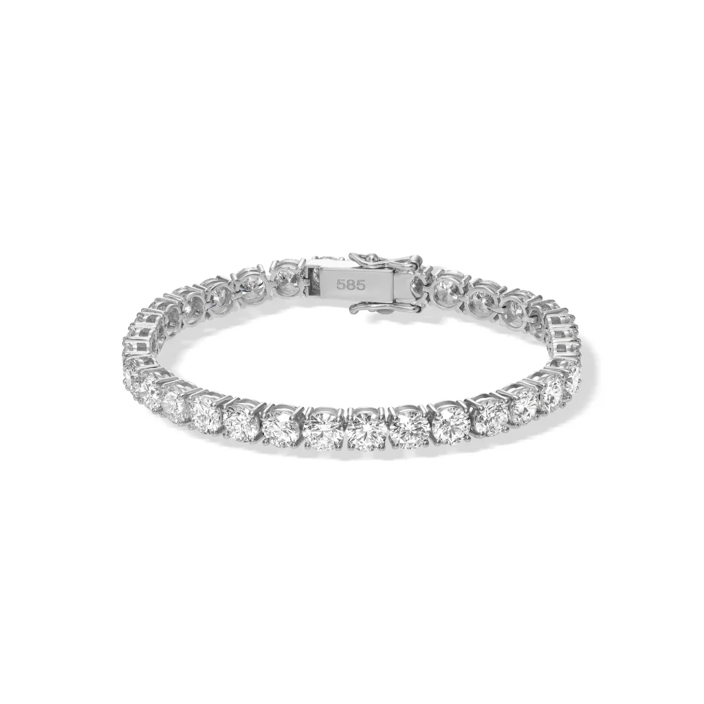 We set each of the 32 magnificent stones with great care. The bracelet is available in your choice of 14K gold. It also features a secure clasp to keep it safe.