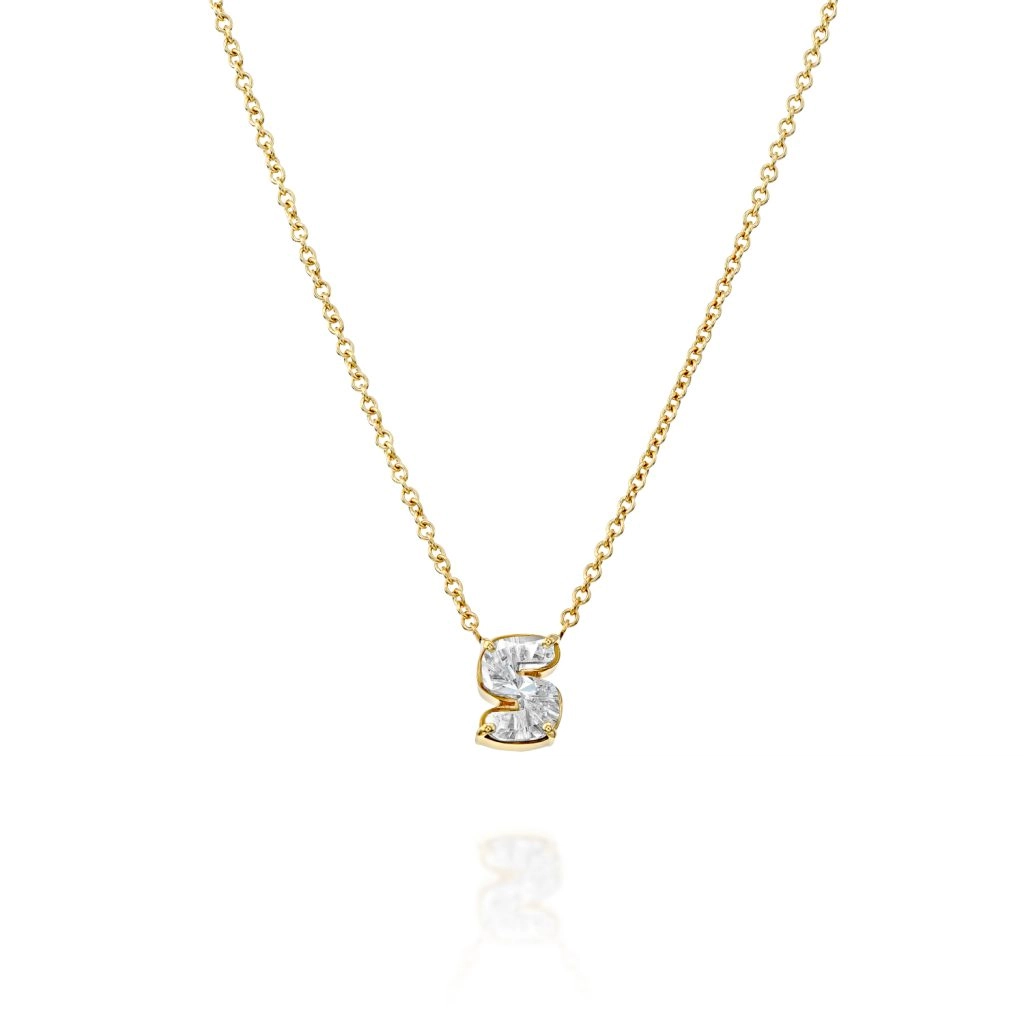 Each initial is crafted with exceptional lab-grown diamonds. We use only high-grade stones for a truly luxurious finish. These are E color, VVS clarity diamonds, meaning they have a beautiful, colorless appearance and are virtually flawless to the naked eye. The unique cuts of the diamonds are set perfectly in 14K gold to form your chosen letter. This creates a solid, sparkling initial that shines from every angle.