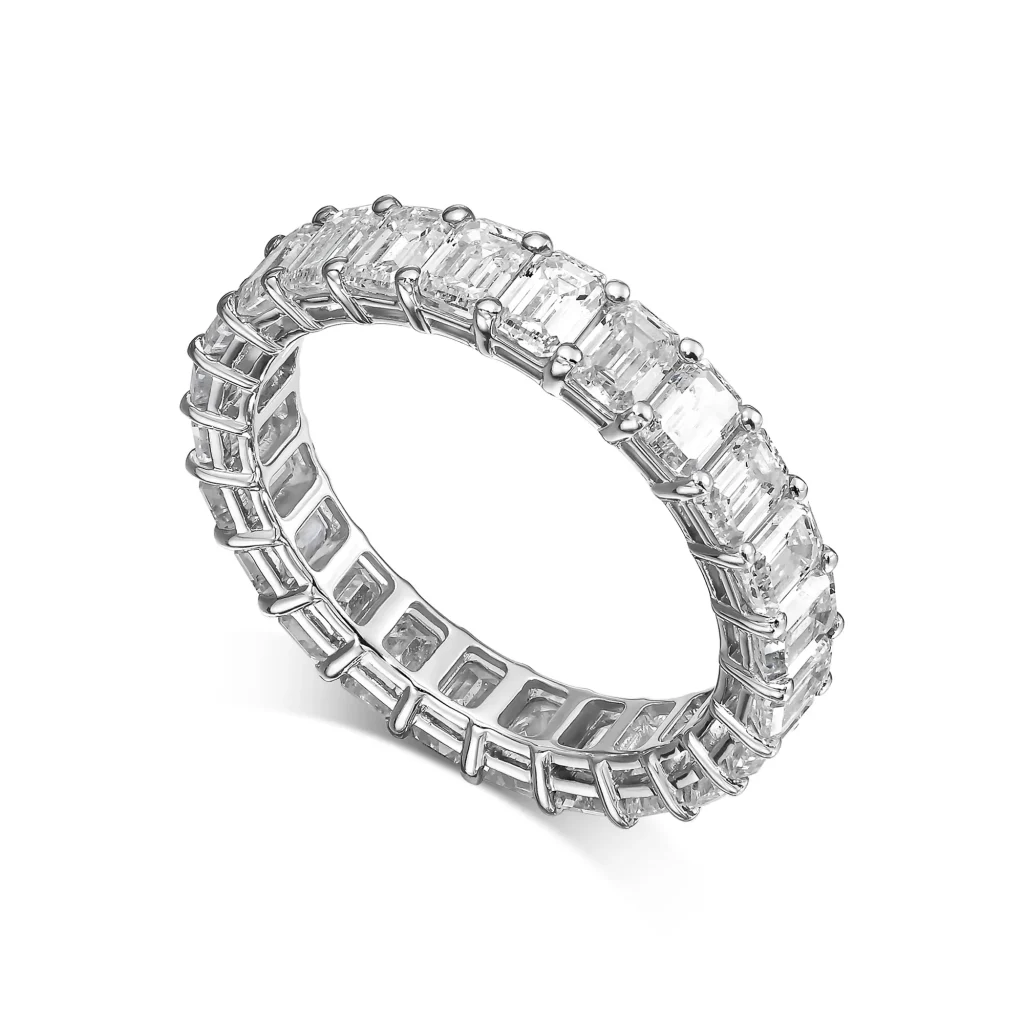 The Emerald Diamond Eternal Ring transforms any moment into pure magic. This breathtaking piece captures light like frozen starlight, creating sparkles that dance with every gesture. Twenty-four perfectly matched emerald-cut diamonds form an unbroken circle of brilliance around your finger.